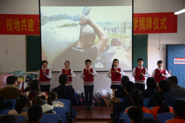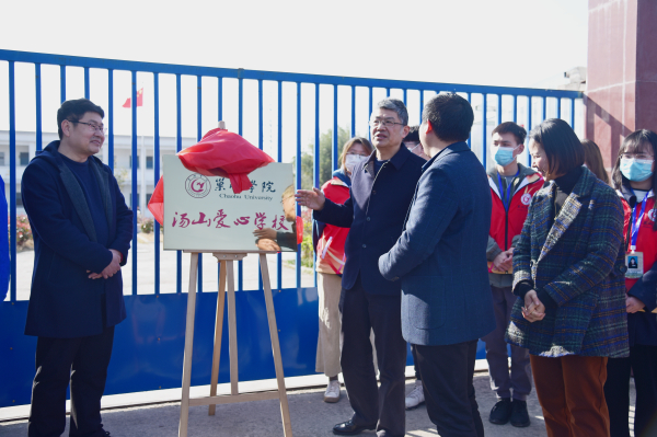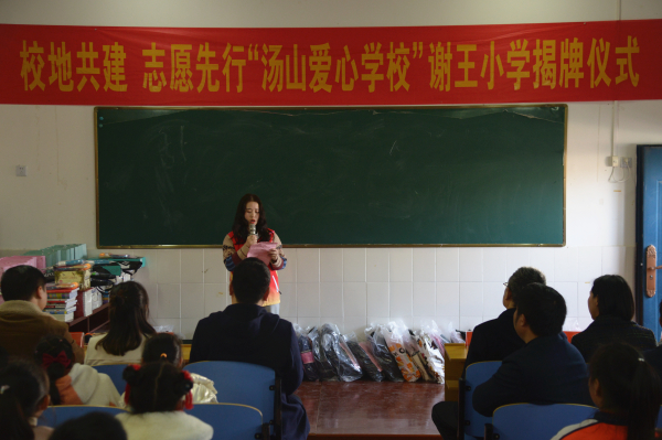 活動最后,校黨委副書記阮愛民、散兵鎮(zhèn)鎮(zhèn)長曹德明與志愿者們共同為謝王小學“湯山愛心學校”揭牌。