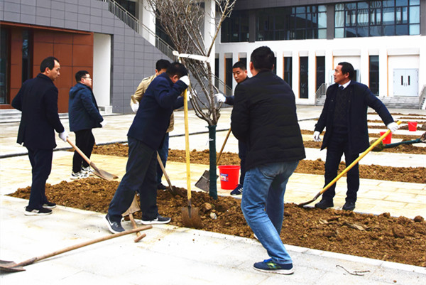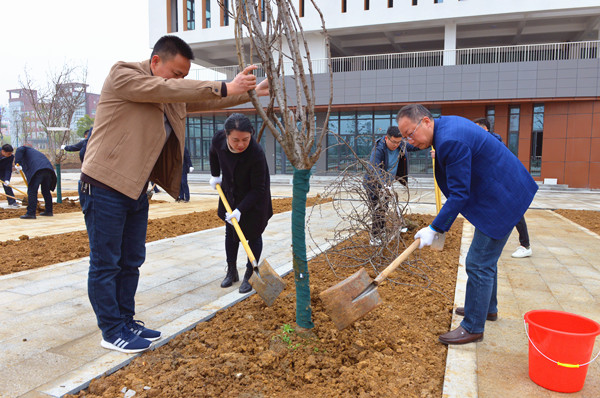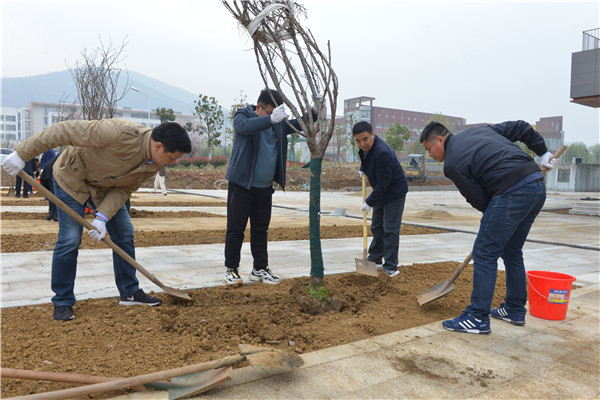 恰逢全民開展義務植樹40周年,3月15日上午,校領導祝家貴、阮愛民、徐柳凡、黃志圣、朱定秀、路順率中層領導干部及師生代表百余人在經濟學院教學實驗樓西北側景觀區域進行義務植樹活動。