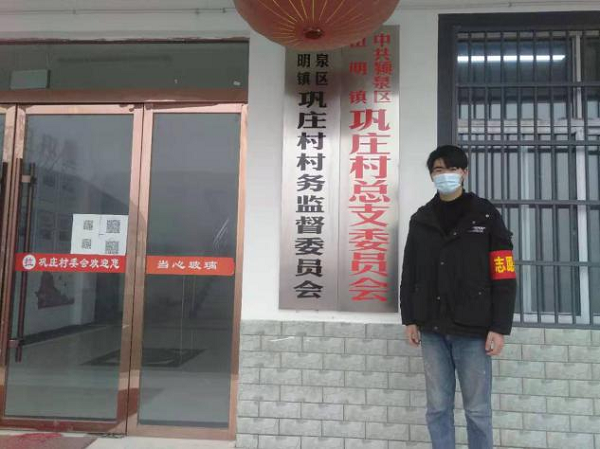 同時,戴天樂與伏志晟也在各自家鄉阜陽市穎泉區伍明鎮鞏莊行政村大隊部幫霍邱縣城關鎮與助人們做核酸檢測以及執勤、發放口罩、酒精消毒。