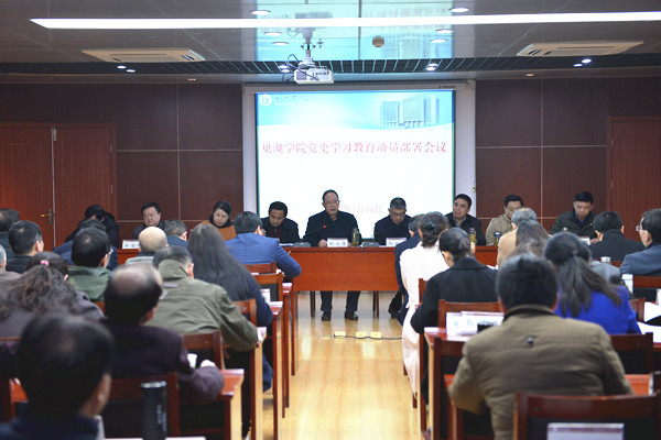 3月18日下午,巢湖學院召開黨史學習教育動員部署會。校黨委副書記、校長祝家貴作黨史學習教育動員講話。校黨委副書記阮愛民主持會議。校黨政領導班子成員,校紀委委員,副處級以上領導干部參加會議。