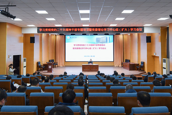 12月1日下午,巢湖學院在求實樓報告廳召開學習貫徹黨的二十大精神干部專題培訓暨黨委理論學習中心組(擴大)學習會議。