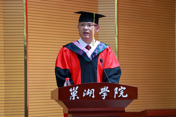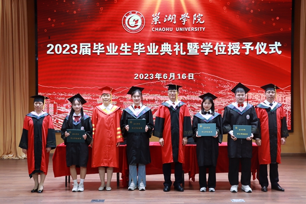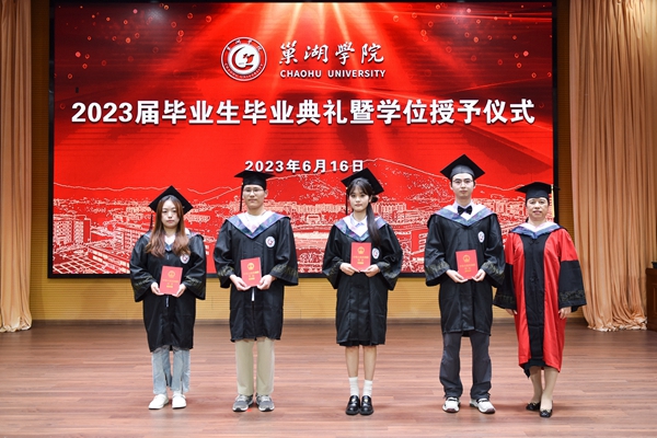 6月16日上午,巢湖學院在求實樓報告廳隆重舉行2023屆畢業生畢業典禮暨學位授予儀式。校領導周峰、張莉、朱定秀、丁俊苗出席畢業典禮。校直單位主要負責人,各學院黨政主要負責人,畢業生代表,校友代表,全體畢業班輔導員,畢業生家長代表參加典禮。此次畢業典禮采取線上和線下同步連線直播方式進行。典禮由校黨委書記周峰主持。