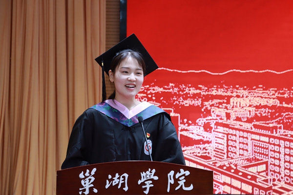 畢業生代表、校友信使代表教師教育學院2019級學前教育專業宋佳同學深切表達了對領導、老師的感激之情和對同學的不舍之情,表示作為新時代的青年學子,要把個人的理想追求融入黨和國家事業之中,勇擔時代使命,以青春之名赴時代之約。