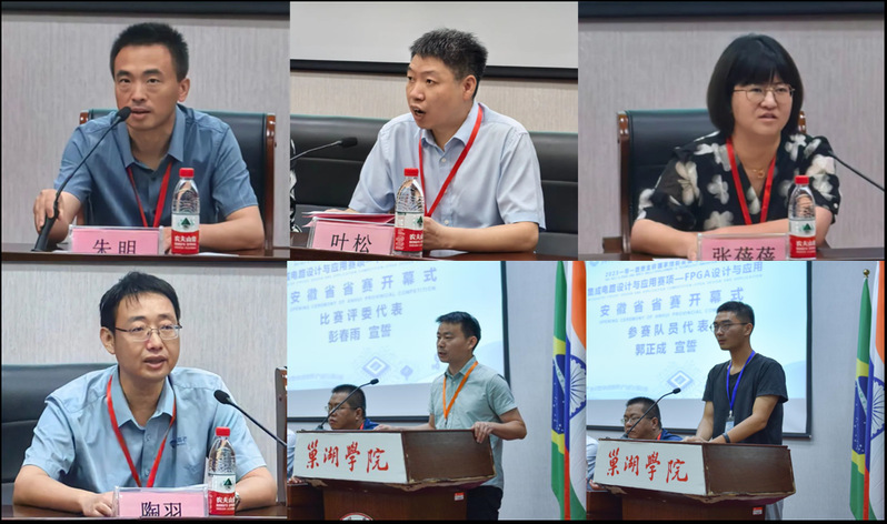 8日上午,電子工程學(xué)院院長(zhǎng)葉松主持了本次競(jìng)賽的開(kāi)幕式。巢湖學(xué)院教務(wù)處處長(zhǎng)朱明、副處長(zhǎng)胡傳雙、副處長(zhǎng)汪世義、副處長(zhǎng)鄧方,電子工程學(xué)院黨委副書(shū)記孔鯤鵬,安徽省半導(dǎo)體行業(yè)協(xié)會(huì)秘書(shū)長(zhǎng)張蓓蓓等有關(guān)領(lǐng)導(dǎo)出席本次競(jìng)賽的開(kāi)幕式。開(kāi)幕式上,朱明、張蓓蓓和陶羽分別進(jìn)行了致辭,裁判員代表彭春雨老師、參賽選手代表郭正成同學(xué)進(jìn)行了宣誓。