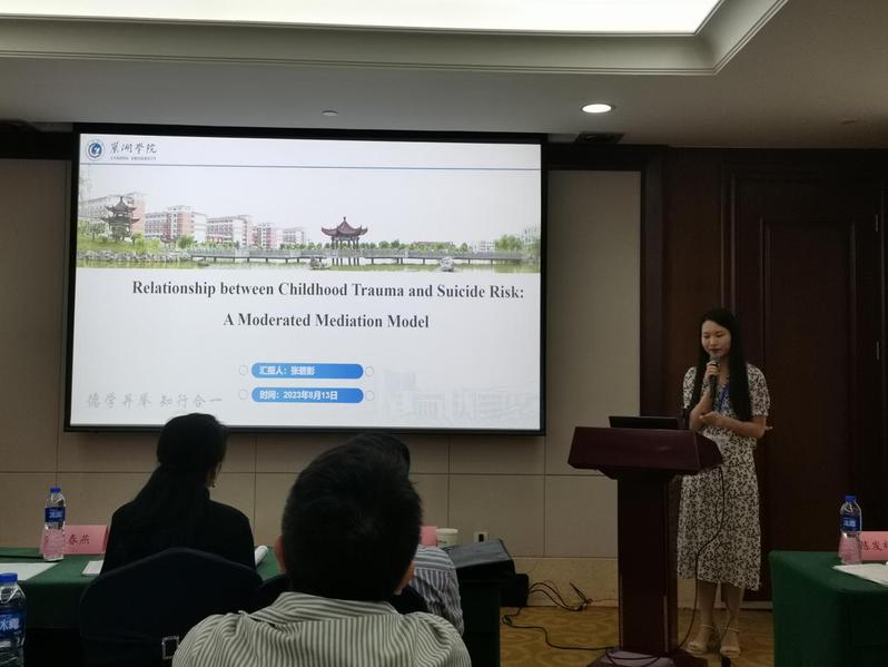 應用心理學專業教師張碧影以“Relationship between Childhood Trauma and Suicide Risk: A Moderated MediationModel”為題進行了論文匯報。選題新穎,貼合當今青少年心理發展中的問題。