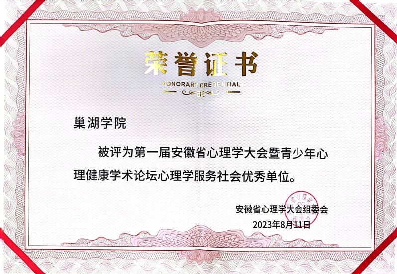 “心理學服務社會”優秀單位 | 集體獎 | 巢湖學院 |