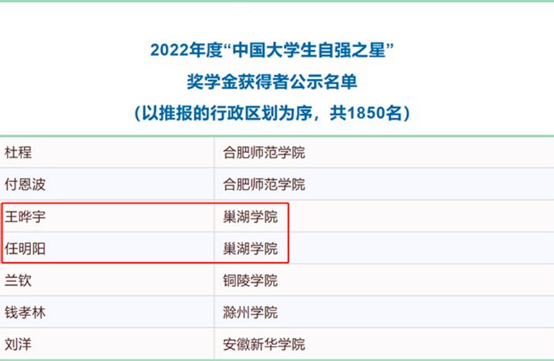 為信仰堅守,為夢想拼搏。王曄宇、任明陽2位同學自立自強精神激勵著每一位巢院學子,青年大學生要向榜樣學習,時刻牢記習近平總書記的囑托,踔厲奮發、勇毅前行,自強不息、艱苦奮斗,在全面建設社會主義現代化國家新征程中貢獻青春力量。