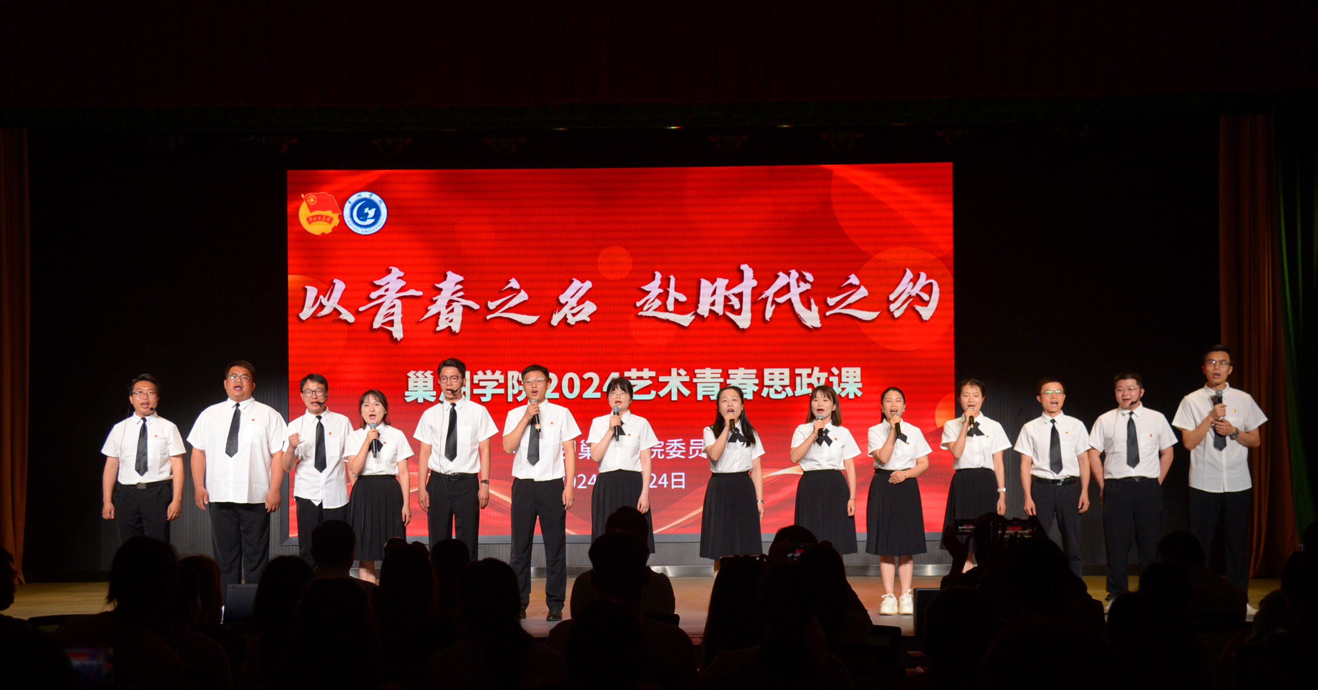 本次藝術青春思政課共分為“青春·立志”“青春·奮斗”“青春·建功”“青春·未來”四個篇章。活動在鼓樂《中國龍》中拉開帷幕。第一篇章的歌舞《上春山》、朗誦《青春的詩篇》和街舞《沸騰的青春》讓大家仿佛置身于繁花似錦的春天,感受到青春的勃勃生機,感受到青春是一段充滿激情與夢想的旅程,青春不怕失敗,青春孕育無限可能;第二篇章的《成長在基層 立志攀高峰 巢湖學院西部計劃優秀志愿者感悟分享》視頻,展示了巢院歷屆西部計劃志愿者懷著對基層的樸素情懷,對國家的責任擔當,主動肩負重擔,甘愿“自找苦吃”,到祖國最需要的地方去,用實際行動踐行青春使命,奉獻青春力量。巢湖民歌《秧歌越唱心越甜》為大家呈現了巢湖獨有的地方傳統音樂。朗誦《這樣的攀登者》激勵大家以這些勇敢的攀登者為榜樣,勇往直前,不斷挑戰自我,去創造屬于自己的輝煌;第三篇章的歌曲《追夢人》鼓勵青年做青春盛宴的主角,勇敢地去追逐自己的夢想。朗誦表演《吾輩英雄》啟發大家傳承和發揚英雄們的崇高志向,為國家的繁榮富強和中華民族偉大復興貢獻自己的力量。群舞《晨光曲》用對比手法展現了中華人民共和國成立前夕,中國人民迎著朝陽,沐浴晨曦,追求希望的美好愿景;第四篇章的《祝福你,我的祖國》以動人的歌聲詮釋了何其有幸,生于華夏,愿山河無恙,祖國繁榮昌盛。大合唱《巢湖美》用歌聲描繪湖光山色的美麗畫卷,讓大家陶醉在如詩如畫的意境里,感受巢湖之美。最后由校、院教師團干共同帶來表演《我的未來不是夢》,還原了團干部日常教育引導青年、關心愛護青年的一幕幕場景,表達了愿將小我融入大我,牢記“為黨育人 為國育才”使命,保持事業定力,陪伴引領青年學子與黨同心、跟黨奮斗,不負青春、不負時代的職業誓言。