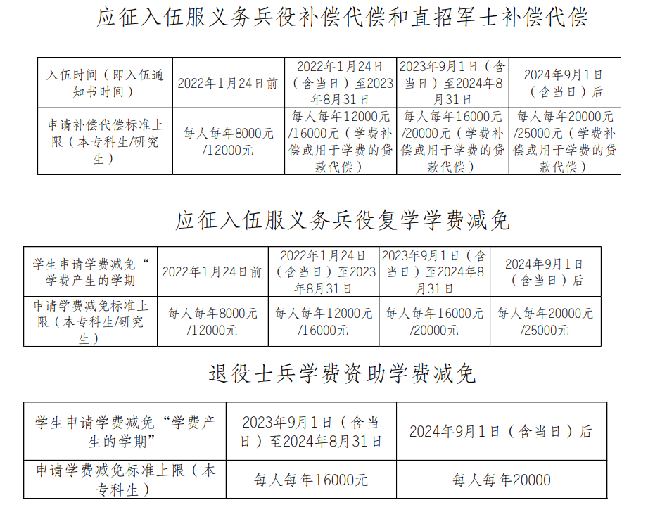 2025年,應(yīng)征入伍、直招軍士的全日制在校生和畢業(yè)生;退役復(fù)學(xué)的全日制在校生;退役士兵入學(xué)新生,均包含本科、研究生、第二學(xué)士學(xué)位學(xué)生。