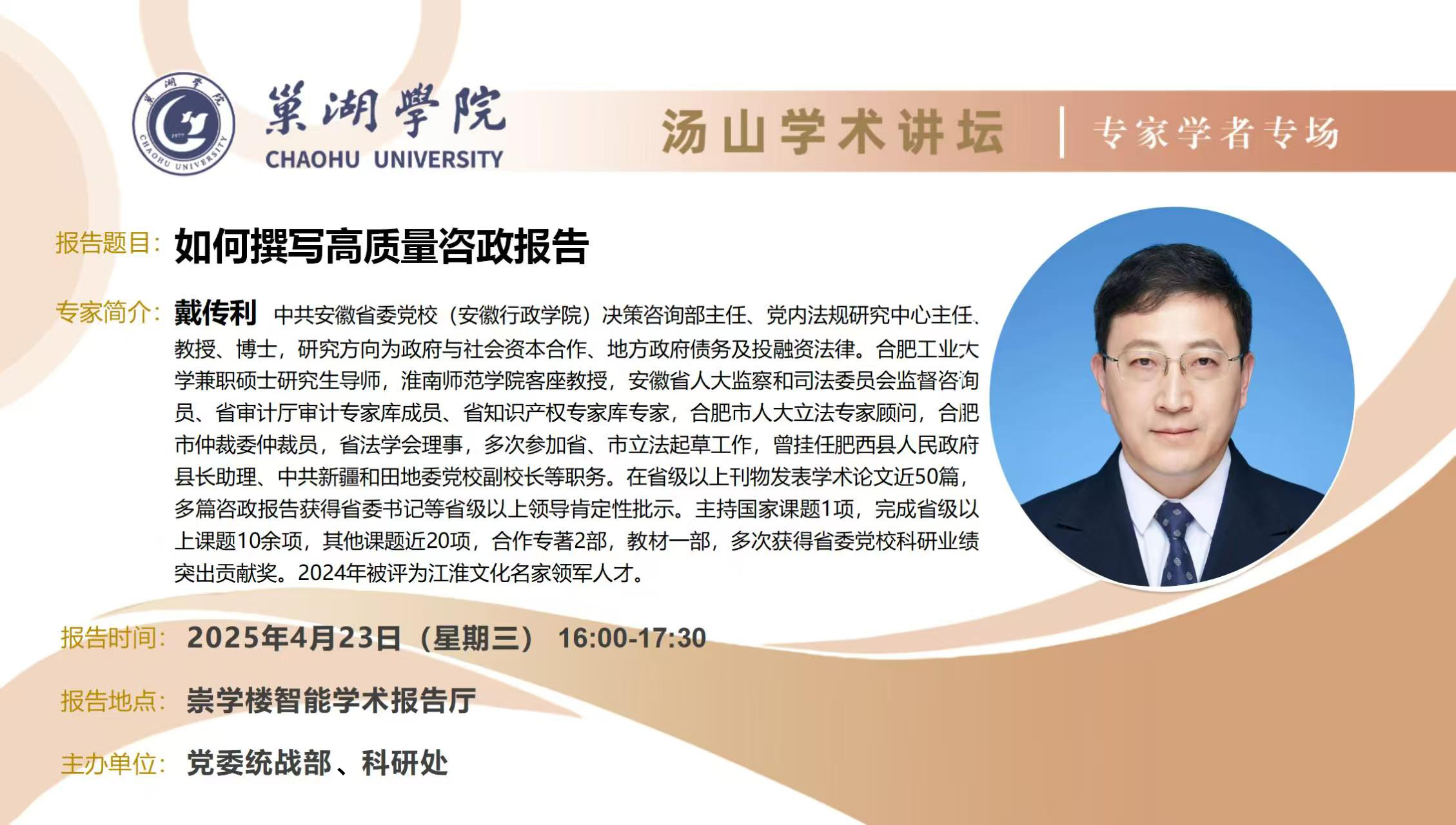 4月23日:中共安徽省委黨校(安徽行政學院)戴傳利主任講座