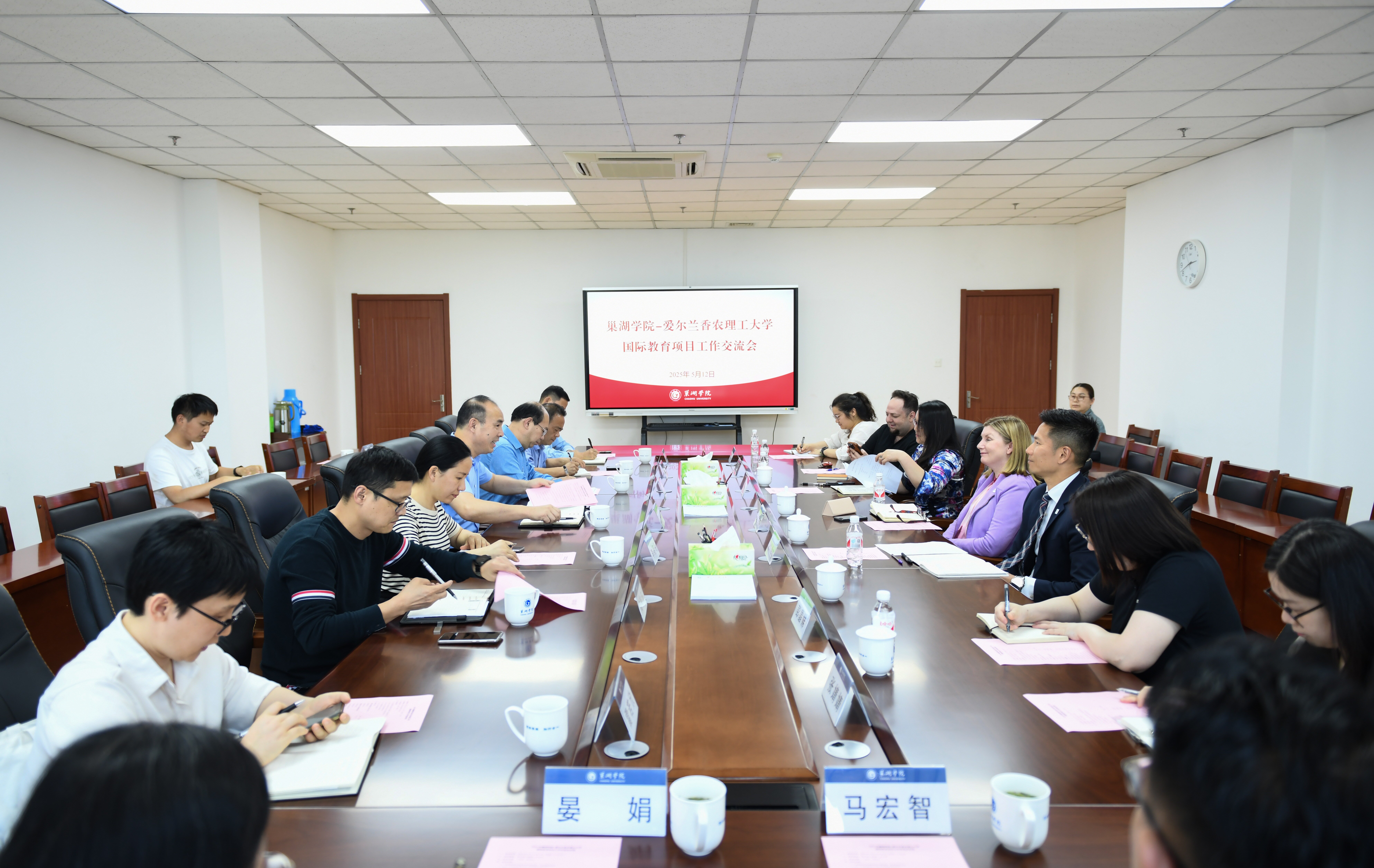 為深化中愛教育合作,推動國際化人才培養(yǎng),5月12日下午,愛爾蘭香農理工大學國際部主任瑪麗·辛普森、亞洲區(qū)總監(jiān)孟晶、安徽代表處負責人汪麗萍等一行訪問巢湖學院。巢湖學院黨委副書記、校長張莉親切會見代表團一行,雙方進行了友好會談。隨后雙方在學校第二會議室召開國際教育項目工作交流會,黨委委員、副校長丁俊苗主持會議,教務處、旅游管理學院、生物與環(huán)境工程學院、工商管理學院及國際交流與繼續(xù)教育學院負責人及相關人員參會。