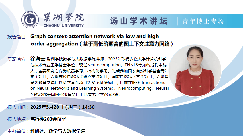 湯山學(xué)術(shù)講壇青年博士專場(chǎng)第12講:(5月28日:數(shù)學(xué)與大數(shù)據(jù)學(xué)院徐海云博士講座)