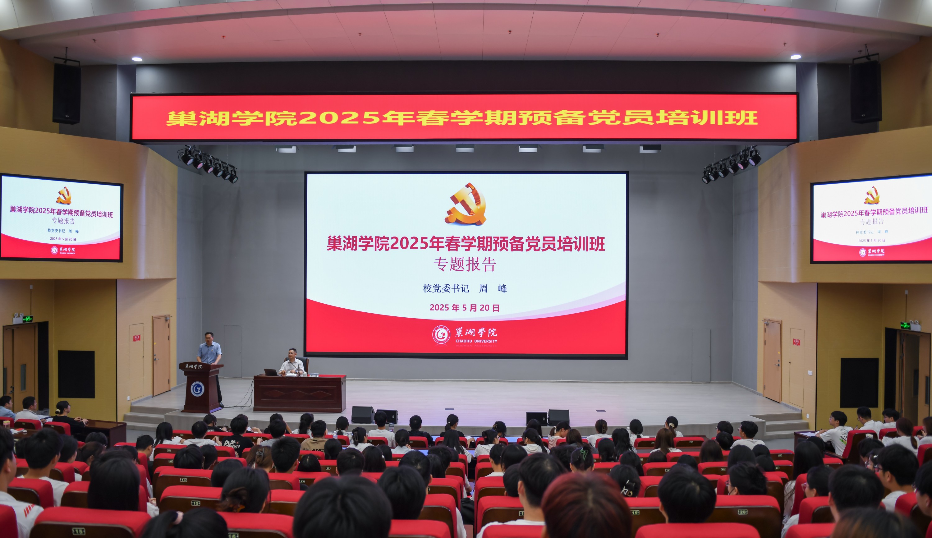 為加強黨員教育管理,加強與青年學生交流,5月20日晚,巢湖學院在崇學樓智能學術報告廳舉辦2025年春學期預備黨員培訓班專題報告。本次專題報告由校黨委書記周峰主講,400余名預備黨員參加培訓,會議由校黨委委員、黨委組織部部長、校黨委黨校常務副校長柯應根主持。