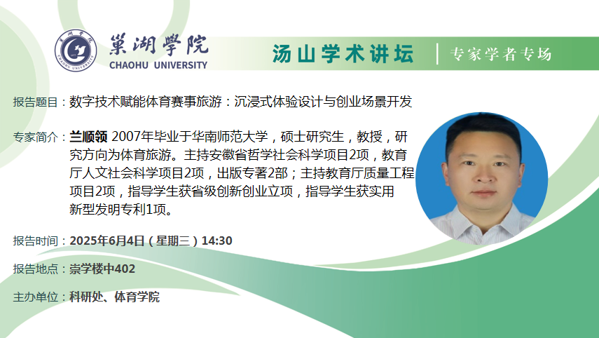 6月4日:巢湖學院體育學院蘭順領教授講座