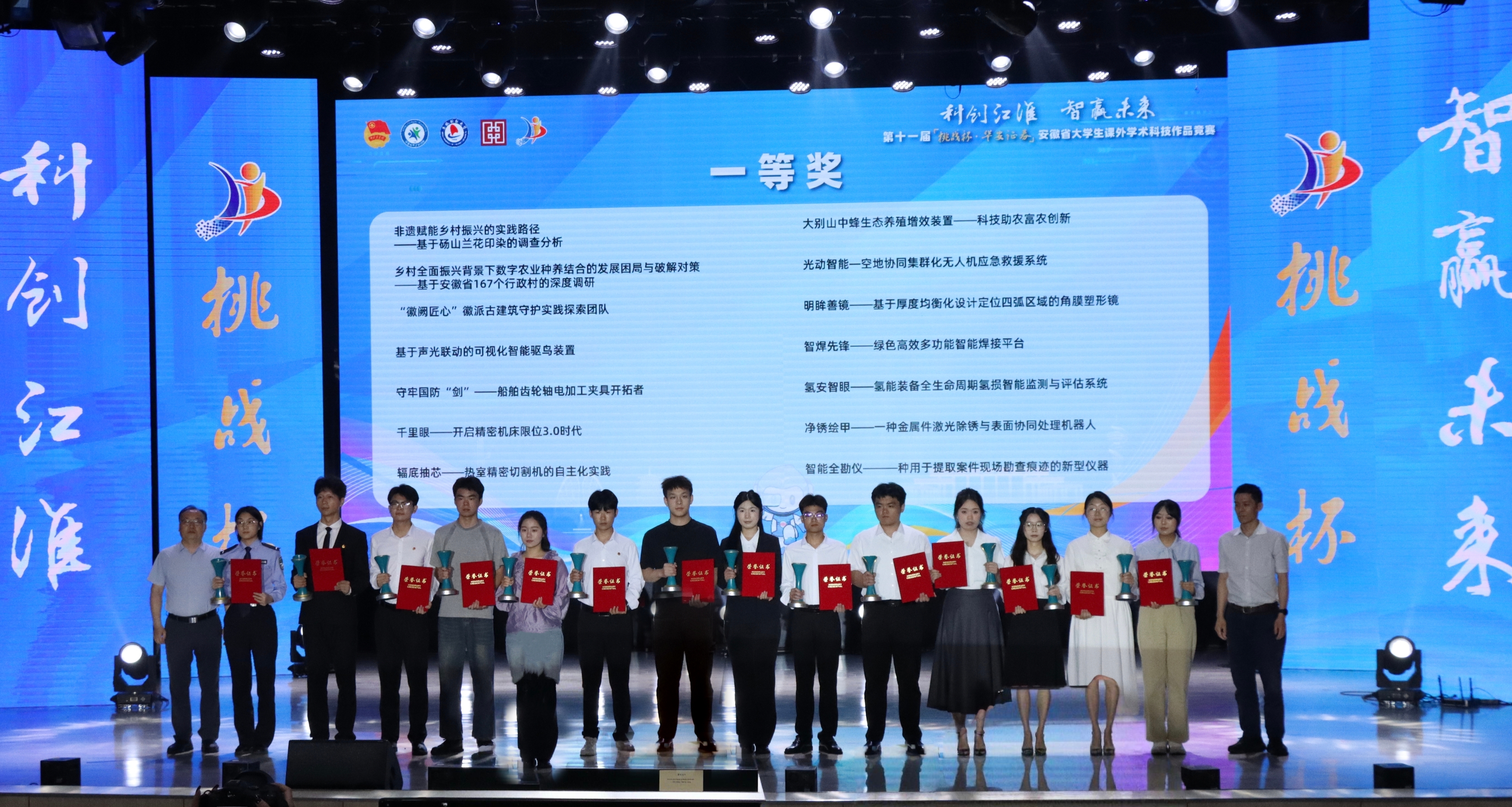 本次大賽根據入圍項目數量和參賽組別分為8組評審答辯。我校機械工程學院、外國語學院、計算機與人工智能學院、化學與材料工程學院和美術與設計學院推薦的7件作品入圍省級決賽現場答辯環節。經過激烈角逐,我校機械工程學院夏小維、侯冠宇和蘇潔紅老師指導的項目《風睿視界——高精度風場能見度同步探測激光雷達》利用光學探頭接收并分析大氣中氣溶膠粒子散射光的多普勒頻移來精確測量風速和風向,榮獲科技發明制作類一等獎;外國語學院余仁能、王時玉和張園園老師指導的項目《當“歷史”邂逅“復興”:徽派古建筑保護與可持續發展的實證研究——基于黃山市100個徽派古建筑的連續3年服務追蹤的田野調查》深入剖析徽派古建筑保護與可持續發展現狀,實現文化遺產保護與鄉村振興的深度融合,榮獲哲學社會科學類社會調查報告一等獎。美術與設計學院貢婷、陳建老師指導的作品《“廬”火純青——智媒時代安徽廬劇“再生計劃”》,化學與材料工程學院李川、王成、張強強老師指導的作品《材鑄新輝——新能源汽車制動系統寬溫域長壽命復合密封材料的研究》,計算機與人工智能學院彭興、金而立、王洪海老師指導的作品《農巡智鑒——基于ViT-YOLO的數智化病蟲害診斷系統》,機械工程學院邢剛、廖生溫、李久昊老師指導的作品《天眼巡航——新一代無人機智能巡檢翼動探索者》,邢剛、蘇潔紅、謝丹丹老師指導的作品《“翼”網打盡-基于AI的一體化無人機智控堡壘》獲得二等獎。體育學院趙勝國、曹保彥、杜銳老師指導的作品《銀發經濟視域下老年人體育消費數字化轉型之困及其破解》,計算機與人工智能學院房丙午、吳其林、金而立老師指導的作品《智纜先鋒——新一代智能放線裝置》,電子工程學院許葛亮、葉松、金而立老師指導的作品《智救先鋒——災區靈動救援仿生碳纖先鋒》,機械工程學院邢剛、張自鋒、彭亮春老師指導的作品《儲擎靈控——基于自適應機械調控的智能光儲協同系統研發與產業化 》,經濟與法學學院江海、吳娜老師指導的作品《青年參與農村“天價彩禮”治理的困境和對策》,工商管理學院葛曉龍、金晶老師指導的作品《中醫煥新機-峏山楊非遺文化的“青春煥新”》,化學與材料工程學院劉葉峰、左鵬老師指導的作品《“硫”燼無痕:AI賦能缺陷型MoO3/多孔碳復合材料的智能構筑與燃油深度脫硫》,旅游管理學院儲小樂、馬宏智、黃維兵老師指導的作品《皖美“巢”聲——基于環巢湖十二鎮的國家級非遺巢湖民歌傳承與保護的實證調研》,教師教育學院劉楊、湯重、崔雁濤老師指導的作品《美育普惠性服務的實踐探索與創新路徑—基于環巢湖12鎮的鄉村美育振興深度考察》,數學與大數據學院冀祥麟、管成功、嚴桓普老師指導的作品《大數據視閾下脆皮大學生現狀分析——基于長三角地區40所高校的調查研究》獲得三等獎。
