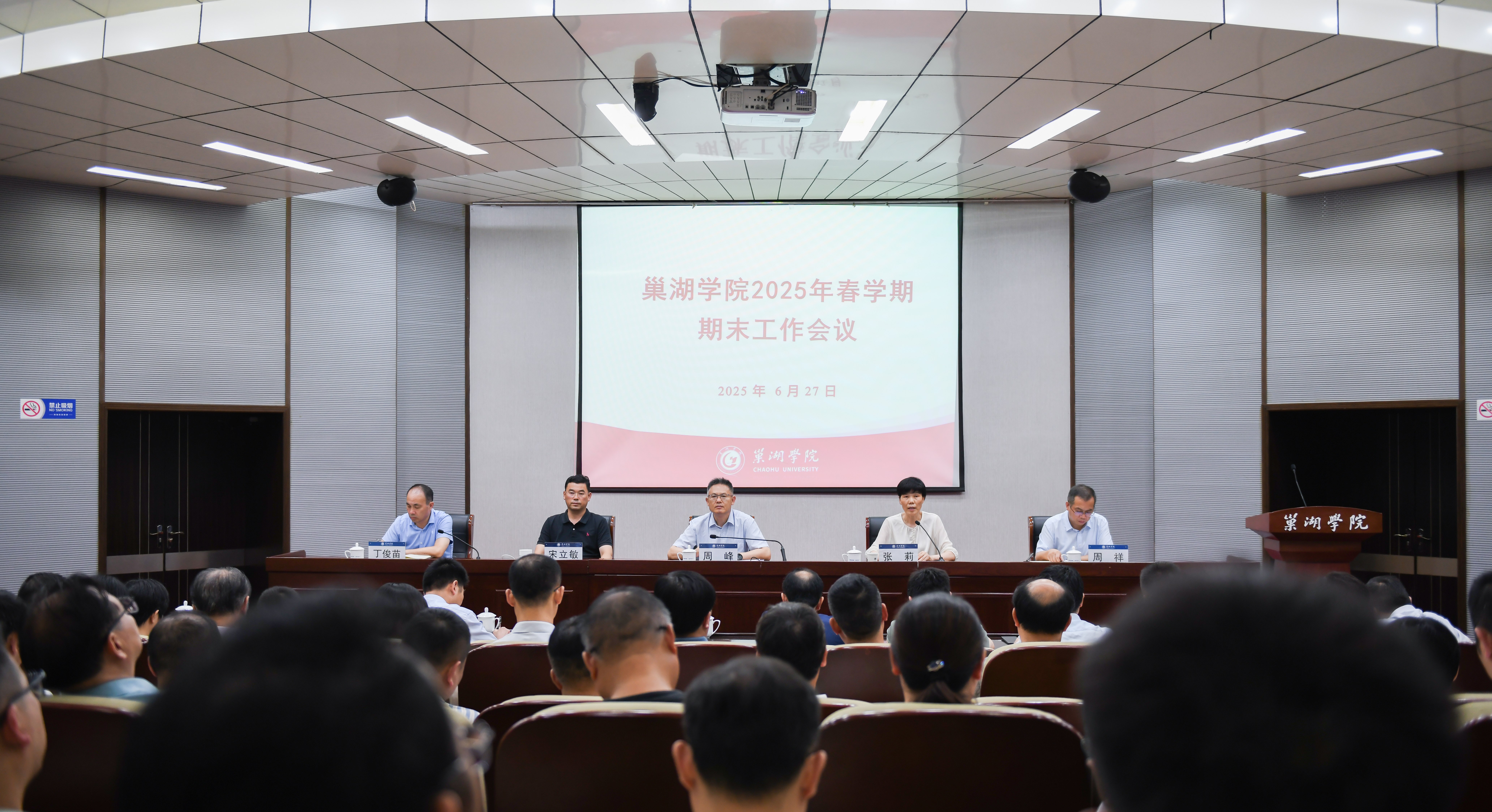 6月27日下午,學校在致知樓報告廳召開2025年春學期期末工作會議。黨委副書記、校長張莉回顧總結上半年學校各項工作開展情況,全面部署安排暑期各項重點工作。黨委書記周峰主持會議。全體校領導出席會議,處級領導干部參加會議。