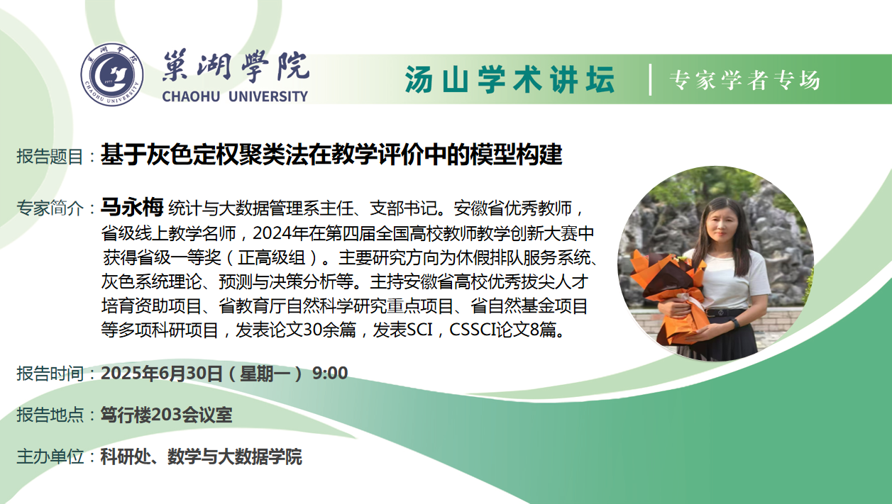 6月30日:巢湖學院數學與大數據學院馬永梅教授講座