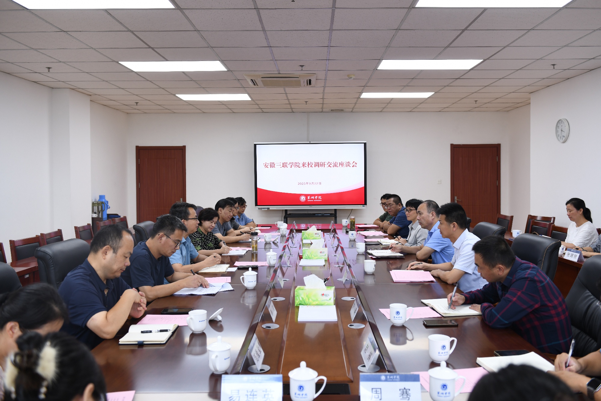 9月22日下午,安徽三聯學院副校長操曉峰、蔡文芬一行來校調研交流。校黨委委員、副校長丁俊苗主持座談會,發規處、教務處、旅游管理學院、工商管理學院負責人及相關教師參加座談交流。