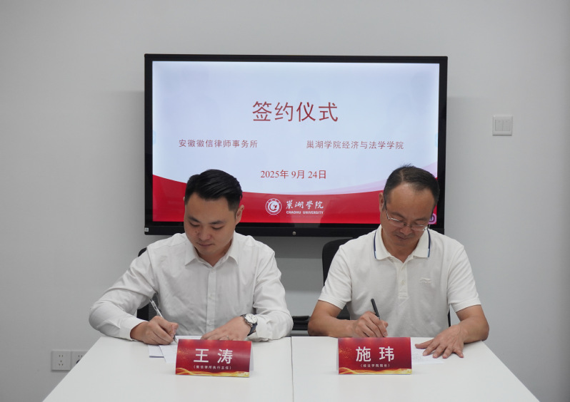 會后,施瑋與王濤共同簽署實習就業基地合作協議,并為“巢湖學院實習就業基地”揭牌。
