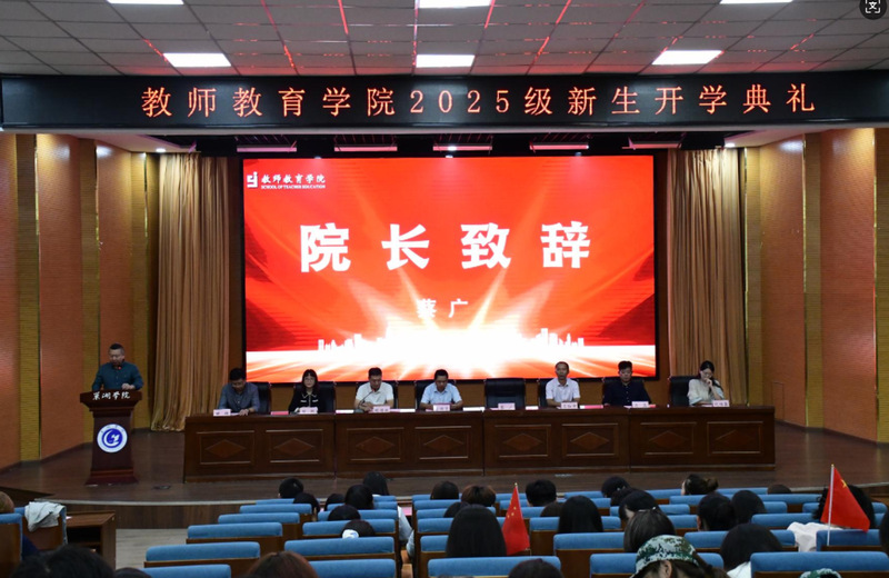 ???秋風送爽啟新程,青春筑夢正當時。9月24日晚,教師教育學院在求實樓報告廳舉行2025級新生開學典禮。學院黨政領導班子成員、各專業負責人、教師代表、專職輔導員及2025級全體新生齊聚一堂,共同見證這一重要時刻。典禮由學院黨委副書記胡傳雙主持。