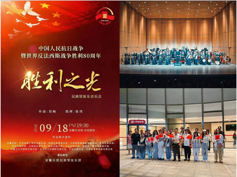 為紀(jì)念中國(guó)人民抗日戰(zhàn)爭(zhēng)暨世界反法西斯戰(zhàn)爭(zhēng)勝利80周年,在“九一八”事變紀(jì)念日這個(gè)莊嚴(yán)時(shí)刻,教師教育學(xué)院黨委組織師生黨員及音樂(lè)表演專業(yè)學(xué)生代表,前往安徽百戲城·雜技劇場(chǎng)觀看安徽民族管弦交響樂(lè)團(tuán)演出的《勝利之光》民族管弦樂(lè)音樂(lè)會(huì),將黨性教育、專業(yè)實(shí)踐與思政育人有機(jī)融合,構(gòu)建“藝術(shù)觀摩+思政教育+專業(yè)學(xué)習(xí)”協(xié)同育人新模式。