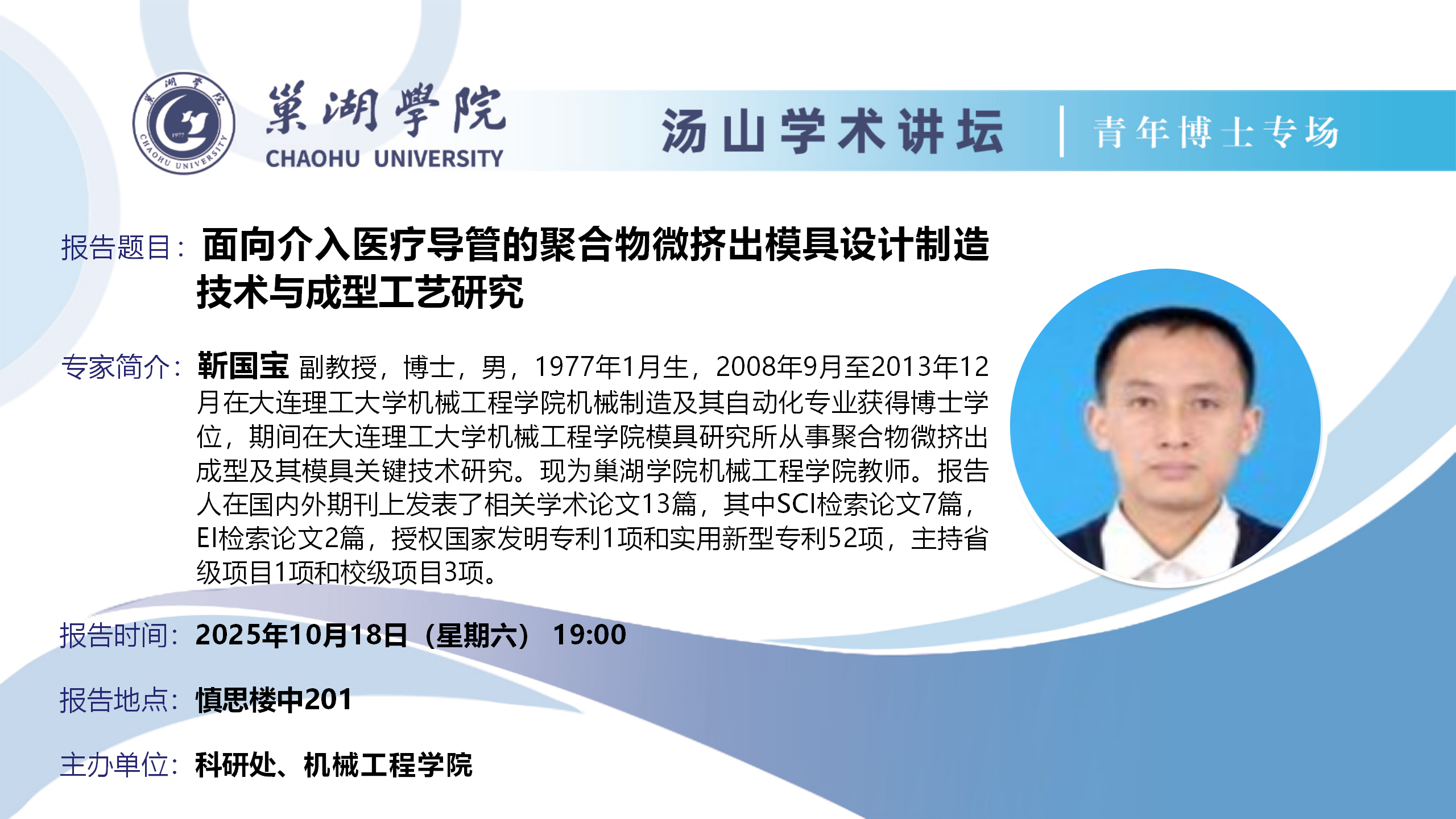 湯山學術講壇青年博士專場第22講:(10月18日:機械工程學院靳國寶博士講座)