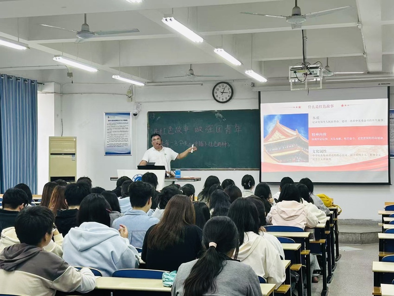 余仁能從“什么是紅色故事”“為什么要講好紅色故事”“紅色故事對強(qiáng)國青年的意義”“如何做好新時代強(qiáng)國青年”四個方面展開授課。他通過講述鮮活的紅色人物事跡與經(jīng)典紅色故事,生動闡釋了紅色故事的深層價值——作為中華民族精神譜系的重要組成,紅色故事承載著中國共產(chǎn)黨的信仰之光,更是激勵當(dāng)代青年砥礪前行的精神源泉,讓學(xué)生對紅色文化的內(nèi)涵有了更深刻的認(rèn)知。余仁能以外國語學(xué)院紅色文化口述史實踐團(tuán)隊為實例,詳細(xì)介紹了環(huán)巢湖地區(qū)豐富的紅色文化資源,以及當(dāng)?shù)剜l(xiāng)鎮(zhèn)在紅色文化傳承中的創(chuàng)新做法與典型經(jīng)驗。他鼓勵同學(xué)們主動走進(jìn)紅色教育基地,在實地探訪中汲取紅色力量。同時,余仁能還分享了外國語學(xué)院在紅色育人領(lǐng)域的工作成果與特色做法,希望更多同學(xué)加入學(xué)院紅色育人質(zhì)量提升工程項目的系列活動,結(jié)合自身學(xué)科專業(yè)優(yōu)勢,創(chuàng)新紅色故事傳播方式,讓紅色文化在青年群體中煥發(fā)新活力。