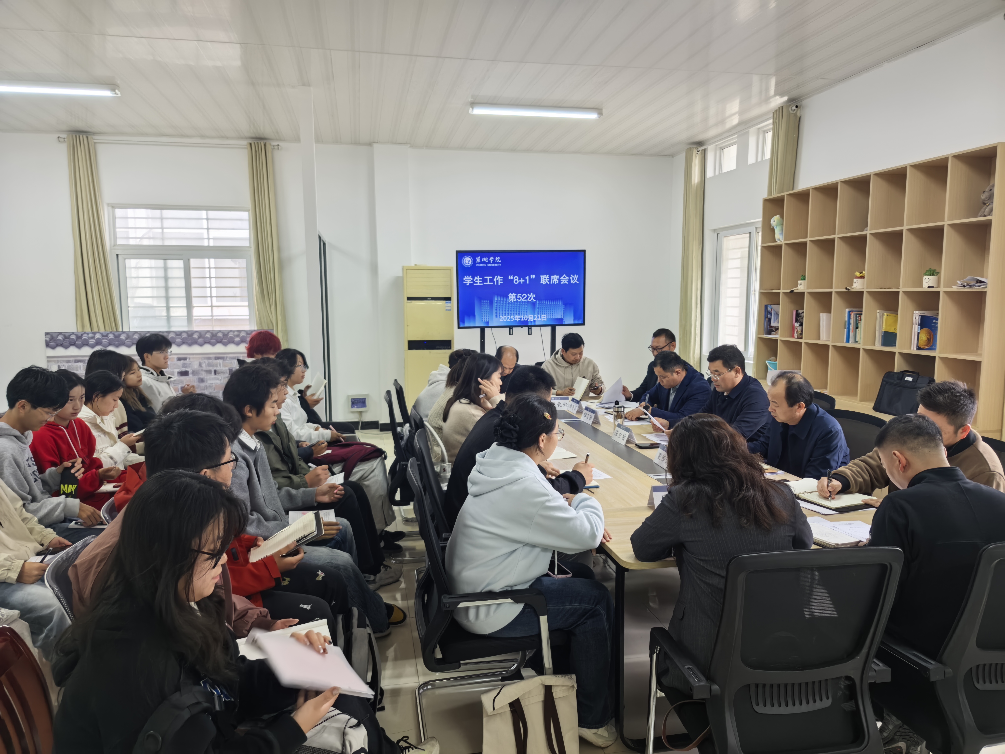 10月21日下午,巢湖學院第52次學生工作“8+1”聯席會議在泮山苑·青春領航一站式學生社區召開。校黨委副書記宋立敏主持會議并講話,宣傳部、學工部、保衛部、教務處、后勤處、信息化處、圖書館、團委等部門負責人及2025級學生代表共同參會。