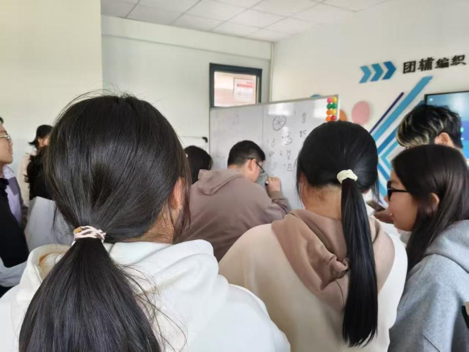 緊接著,“你畫我猜”游戲依次展開。各組同學借助簡潔的線條與創意涂鴉描繪指定詞語,其他成員則從不同角度解讀畫面、交流想法。通過這一游戲,同學們之間的思維相互碰撞,不僅進一步拉近了彼此的距離,還讓大家在輕松愉悅中感受到了集體智慧的魅力,為后續攜手同行開啟了良好的開端。
