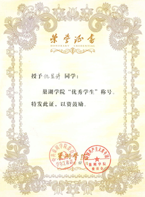 在一系列的獎項中,談起“三好學生”的獲得,仇顯婷還是感觸頗深,她邊回憶邊說道:“在步入大學的前十八年里,我一直覺得自己是個很普通的學生,對于自己并沒有什么信心,但當我拿到‘三好學生’證書的時候,我突然感覺有了底氣一般,這種肯定真的是我從沒有感受過的。”薄薄的一張證書于仇顯婷而言,意義遠比其本身的重量大得多,獲得信心與底氣的她如柴陵郁禪師的明珠一般“塵盡光生”,雖不能“照破山河萬朵”,卻也能將自己前方的道路照亮明晰。