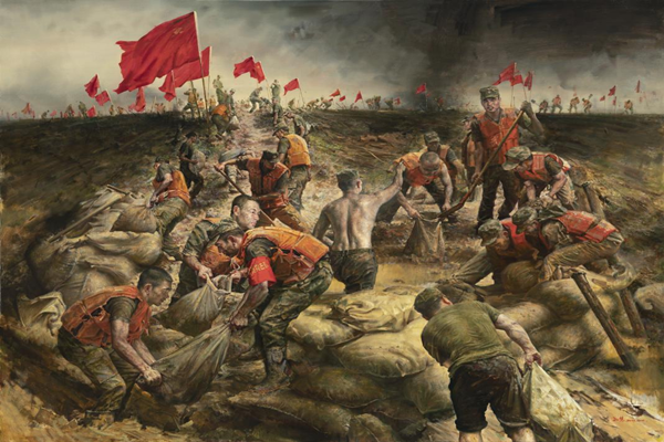 孔慧申報的油畫《抗洪搶險》,緊扣“抗洪有溫暖,軍民魚水情”展開,把作品畫在部隊官兵的搶險一線的陣地,書寫充滿能量和使命的抗洪進行曲,再現了戰士們忠誠堅定的意志與吃苦耐勞的精神,把美術創作融入實現中國夢的偉大實踐中,呈現出現實主義創作崇高的藝術價值。