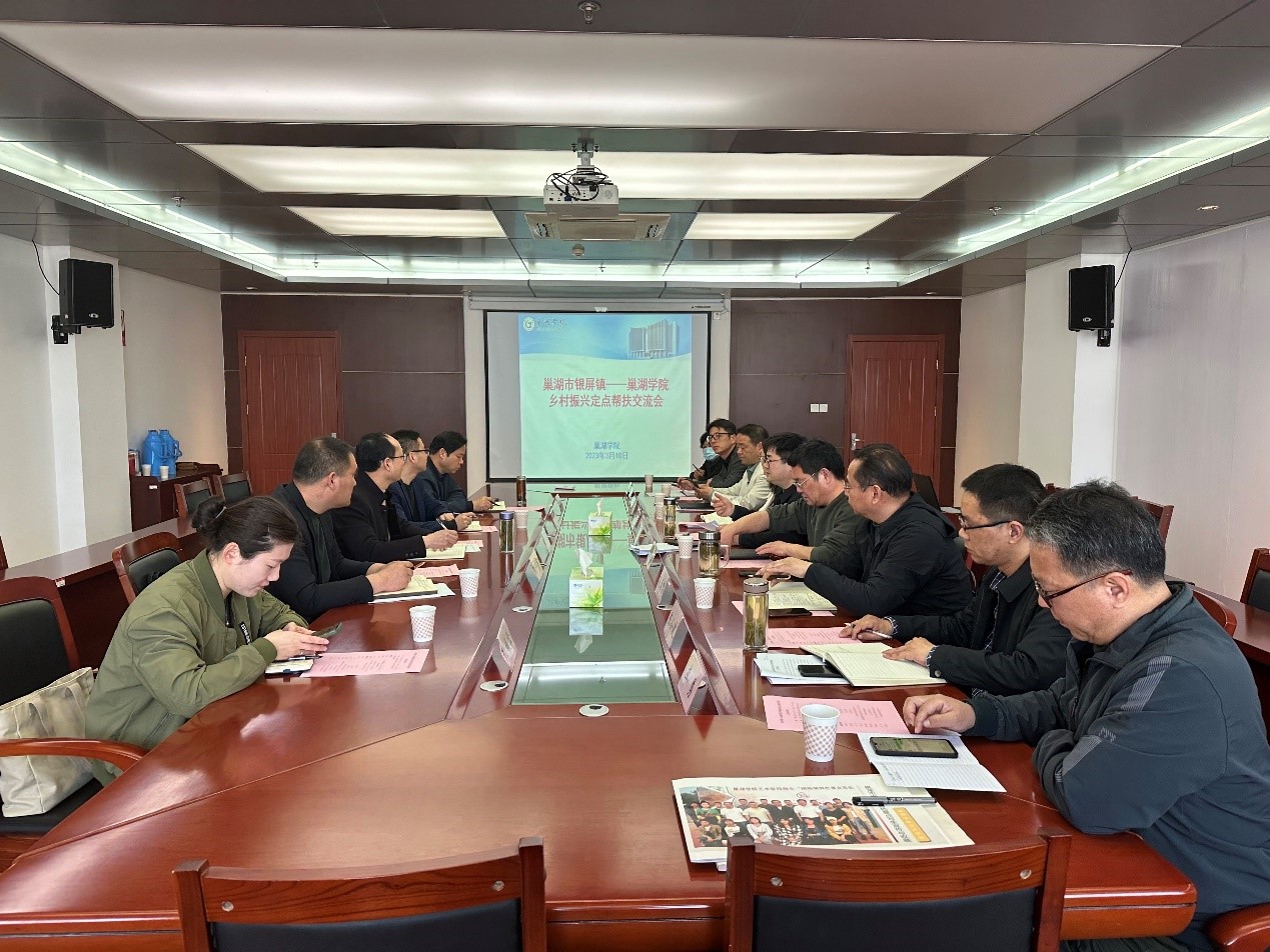 3月10日上午,巢湖市銀屏鎮副鎮長李后井一行來我校對接鄉村振興定點幫扶工作,雙方圍繞2023年三勝村建設發展和定點幫扶工作進行了探討和謀劃。會前,校黨委書記周峰親切接見了李后井一行。學校有關部門和學院負責人參加對接工作會議,校辦公室主任陳和龍主持會議。