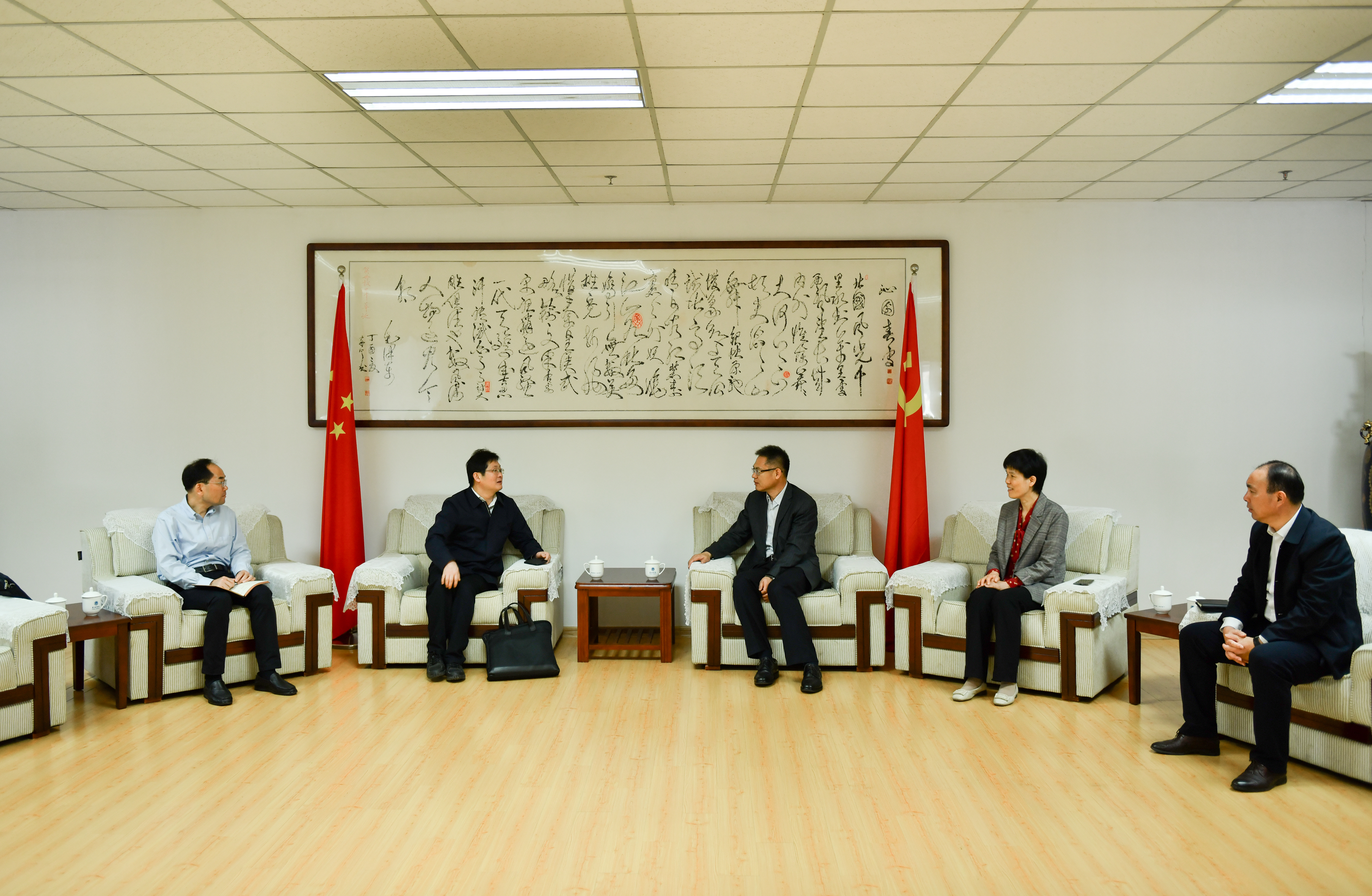 11月1日上午,安徽巢湖經開區黨工委書記兼管委會主任、巢湖市委書記張紅軍,黨工委副書記、紀檢監察工委書記杜亞斌一行來校調研指導工作。黨委書記周峰,黨委副書記、校長張莉,黨委委員、副校長丁俊苗及相關人員陪同調研。