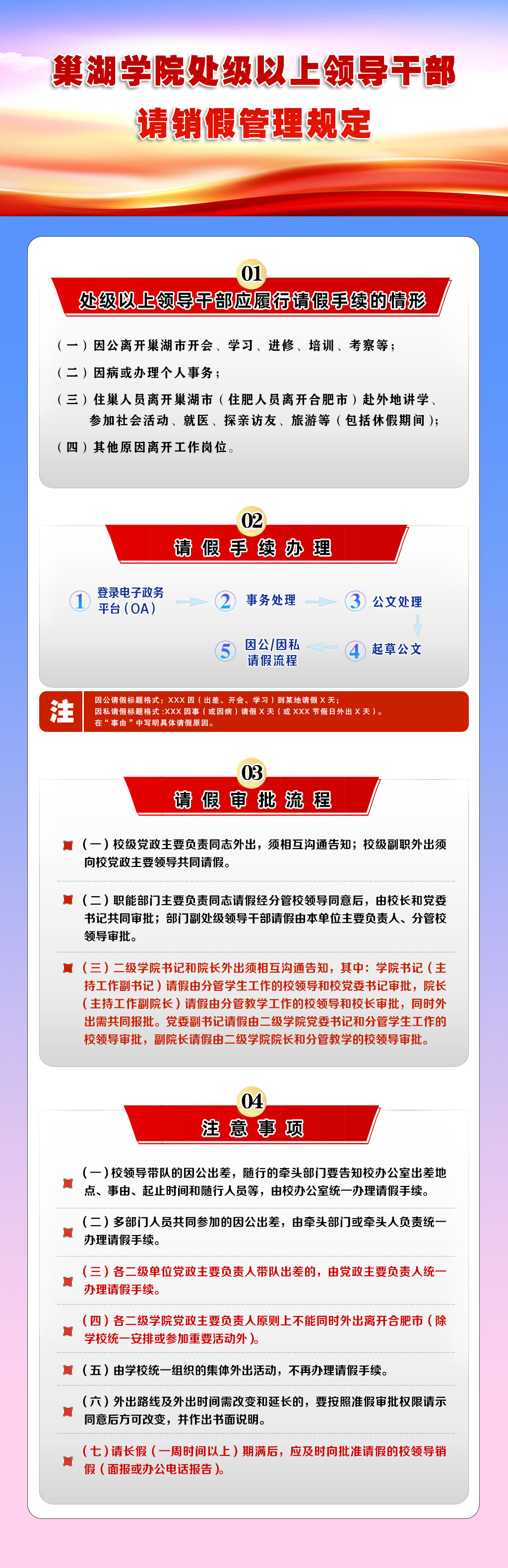 一圖讀懂《巢湖學院處級以上領導干部請銷假管理規定》