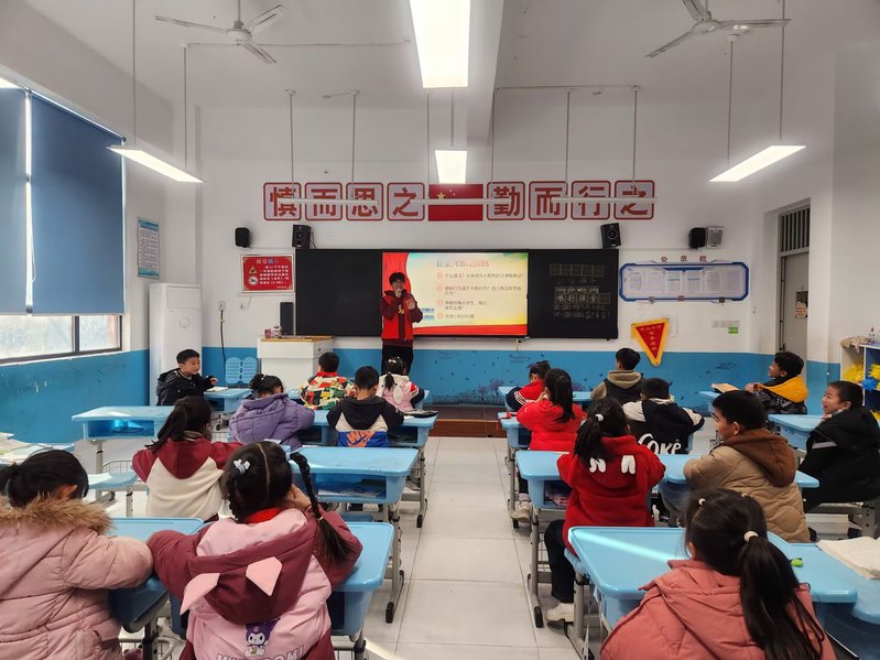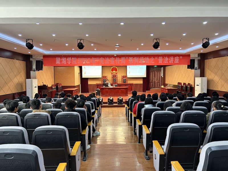 12月6日,邀請經法學院教師在模擬法庭舉辦憲法知識主題講座,從憲法是什么、為什么要學習憲法、憲法的主要內容、憲法的重要性等方面進行講述,采取以案講法、以案學法的方式教育引導學生們樹立憲法法律至上的法治理念。組織入黨積極分子、青馬工程學員、基層團支部學生代表走進巢湖市花山小學和臥牛山社區開展普法宣傳,通過PPT動畫講解、課堂互動、分發憲法宣傳單頁等形式,幫助社區居民和青少年學習憲法知識,提升法治意識。