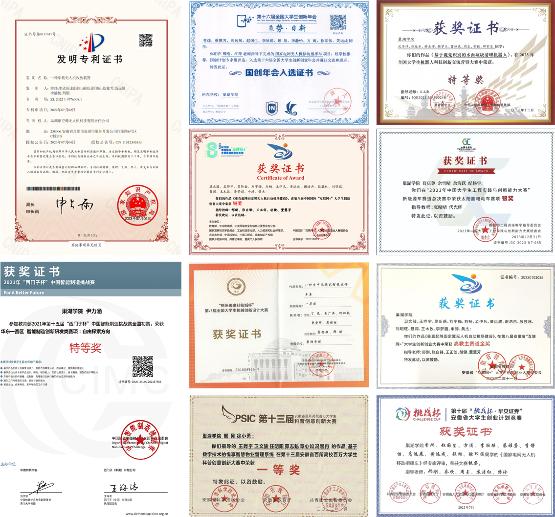 學(xué)院結(jié)合行業(yè)需求與學(xué)科前沿,為大學(xué)生創(chuàng)新創(chuàng)業(yè)訓(xùn)練計(jì)劃項(xiàng)目提供精準(zhǔn)選題指導(dǎo)學(xué)院結(jié)合行業(yè)需求與學(xué)科前沿,為大學(xué)生創(chuàng)新創(chuàng)業(yè)訓(xùn)練計(jì)劃項(xiàng)目提供精準(zhǔn)選題指導(dǎo),確保項(xiàng)目既有學(xué)術(shù)價(jià)值又緊貼實(shí)際應(yīng)用,對(duì)項(xiàng)目實(shí)施過程進(jìn)行跟蹤評(píng)估,及時(shí)優(yōu)化項(xiàng)目方案,依托實(shí)施過程激發(fā)學(xué)生的創(chuàng)新能力。學(xué)生獲批省級(jí)以上大學(xué)生創(chuàng)新創(chuàng)業(yè)訓(xùn)練計(jì)劃項(xiàng)目72項(xiàng),其中國家級(jí)24項(xiàng)、省級(jí)48項(xiàng);獲批“皖維科技創(chuàng)新孵化基金”項(xiàng)目21項(xiàng);2023、2024連續(xù)兩年均有大學(xué)生創(chuàng)新創(chuàng)業(yè)訓(xùn)練計(jì)劃項(xiàng)目入選全國大學(xué)生創(chuàng)新創(chuàng)業(yè)年會(huì)。構(gòu)建從基礎(chǔ)到高級(jí)、從校內(nèi)到校外的分層次競賽體系,確保每位學(xué)生都能找到適合自己的競賽平臺(tái),實(shí)現(xiàn)全員參與,錘煉創(chuàng)新能力。學(xué)生在中國國際大學(xué)生創(chuàng)新大賽、“挑戰(zhàn)杯”全國大學(xué)生課外學(xué)術(shù)科技作品競賽、全國大學(xué)生機(jī)械創(chuàng)新設(shè)計(jì)大賽、中國大學(xué)生工程實(shí)踐與創(chuàng)新能力大賽等學(xué)科競賽中獲國家級(jí)獎(jiǎng)項(xiàng)70項(xiàng)、省級(jí)獎(jiǎng)項(xiàng)260項(xiàng),以第一作者發(fā)表學(xué)術(shù)論文27篇,授權(quán)專利40余項(xiàng)。