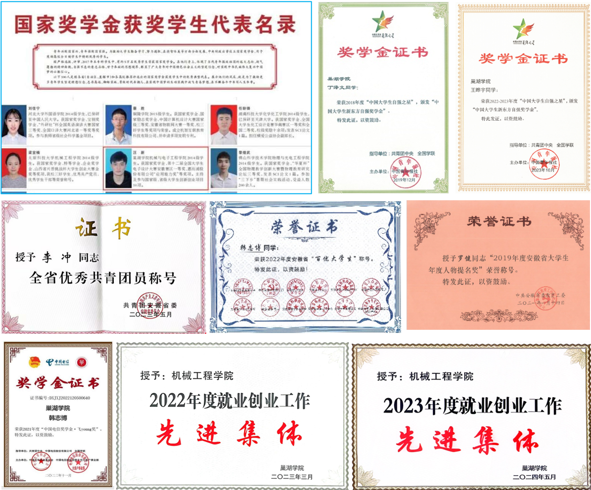 機(jī)械工程學(xué)院秉承“精技強(qiáng)能、匠心筑夢”的教育理念,致力于培養(yǎng)具有扎實(shí)理論基礎(chǔ)、卓越實(shí)踐能力、良好職業(yè)素養(yǎng)的高素質(zhì)機(jī)械工程技術(shù)人才。學(xué)院通過科研平臺(tái)打造、專業(yè)結(jié)構(gòu)調(diào)整、課程體系優(yōu)化、師資隊(duì)伍建設(shè)、學(xué)風(fēng)文化建設(shè)、創(chuàng)新能力培養(yǎng)、競賽與項(xiàng)目驅(qū)動(dòng)、校企聯(lián)合育人等一系列實(shí)踐措施,全面落實(shí)人才培養(yǎng)計(jì)劃,彰顯優(yōu)良學(xué)風(fēng)。學(xué)院先后涌現(xiàn)出中國大學(xué)生自強(qiáng)之星2人、人民日?qǐng)?bào)《國家獎(jiǎng)學(xué)金獲得者優(yōu)秀學(xué)生名錄》2人、安徽省大學(xué)生年度人物1人、安徽省大學(xué)生年度人物提名1人、安徽省百優(yōu)大學(xué)生1人、安徽省優(yōu)秀共青團(tuán)員1人等一大批優(yōu)秀學(xué)子典型。畢業(yè)生考研升學(xué)率連續(xù)3年超20%,學(xué)院連續(xù)4年獲評(píng)學(xué)校“就業(yè)創(chuàng)業(yè)工作先進(jìn)集體”。