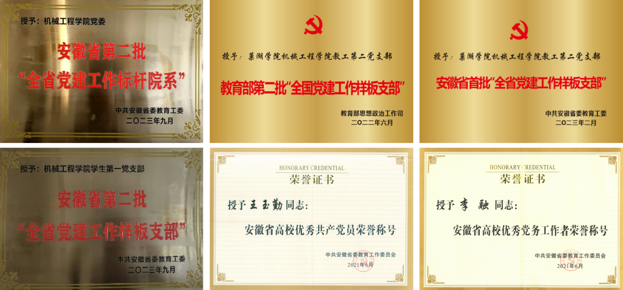 機(jī)械工程學(xué)院黨委始終堅(jiān)守為黨育人、為國育才的初心使命,服務(wù)高教強(qiáng)國建設(shè),充分發(fā)揮“標(biāo)桿院系”的示范帶動(dòng)作用,以增強(qiáng)基層黨組織政治功能為重點(diǎn),鍛造黨支部“戰(zhàn)斗堡壘”、激發(fā)黨員先鋒模范,強(qiáng)化“黨委引領(lǐng)、支部堡壘、黨員先鋒”三維黨建工作,以高質(zhì)量黨建賦能學(xué)院高質(zhì)量發(fā)展,結(jié)出累累碩果。2023年,學(xué)院黨委獲批安徽省第二批“黨建工作標(biāo)桿院系”培育創(chuàng)建單位;2019年,學(xué)院教工第二黨支部獲批全國第二批“黨建工作樣板支部”培育創(chuàng)建單位,已按期通過結(jié)項(xiàng)驗(yàn)收;2024年獲批國家級(jí)高校“雙帶頭人”教師黨支部書記“強(qiáng)國行”專項(xiàng)行動(dòng)建設(shè)項(xiàng)目;2023年學(xué)生第一黨支部獲批安徽省第二批“黨建工作樣板支部”培育創(chuàng)建單位;黨員教師李融、王玉勤分別榮獲“安徽省高校優(yōu)秀黨務(wù)工作者”和“安徽省高校優(yōu)秀共產(chǎn)黨員”稱號(hào)。