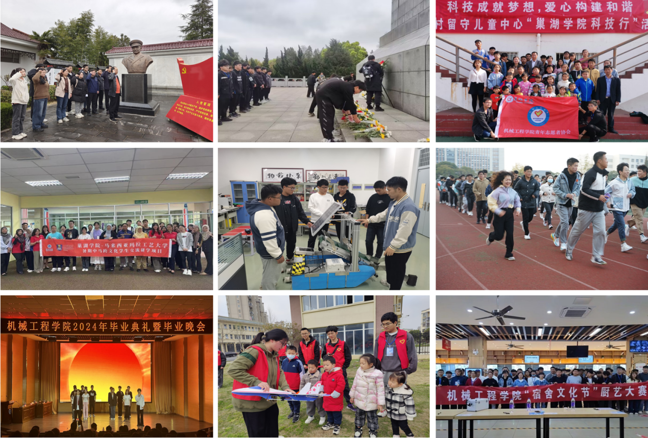 學(xué)院堅(jiān)持培根鑄魂,夯實(shí)理想信念,組織開展思政主題教育活動(dòng),依托學(xué)生黨支部、團(tuán)支部、學(xué)生會(huì)、社團(tuán)等,常態(tài)化開展主題團(tuán)日、“青年大學(xué)習(xí)”“齒輪微講堂”等活動(dòng),厚植學(xué)生愛黨愛國情懷,增強(qiáng)學(xué)生愛校榮校意識(shí);思政教育走出教室、走出學(xué)校,讓學(xué)生在活動(dòng)中踐行青春使命,打造了“七彩課堂”和“青少年科普教育”志愿服務(wù)項(xiàng)目品牌。堅(jiān)持啟智賦能,深耕專業(yè)素養(yǎng),組織學(xué)生參加各級(jí)各類學(xué)科競賽,營造良好學(xué)風(fēng);選派學(xué)生赴馬來西亞瑪拉工藝大學(xué)進(jìn)行中馬跨文化學(xué)生交流研學(xué),給在校學(xué)生提供走出國門、開拓視野、提升英語水平的機(jī)會(huì);舉辦多場次考研經(jīng)驗(yàn)交流會(huì)。堅(jiān)持強(qiáng)身健體,鍛造意志品格,舉行籃球、足球、乒乓球等各類體育比賽,讓學(xué)生在運(yùn)動(dòng)中鍛造意志品格。堅(jiān)持以美潤心,彰顯青春風(fēng)采,舉行迎新典禮、畢業(yè)晚會(huì)、集體觀影、拍攝防艾宣傳視頻等活動(dòng),讓學(xué)生在活動(dòng)中浸潤心靈,彰顯青春風(fēng)采。堅(jiān)持躬身實(shí)踐,勇?lián)鷷r(shí)代使命,舉行各類志愿服務(wù)活動(dòng),讓學(xué)生在實(shí)踐中成長成才。