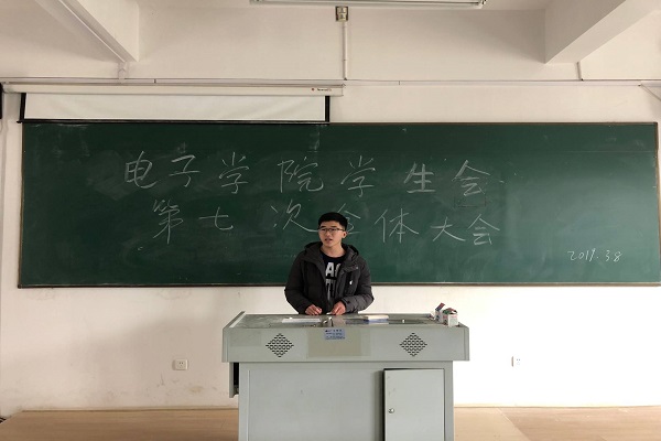 為了保證新學期工作的順利施行,豐富同學們的課余生活,更好地為學生服務。3月8日中午,電子工程學院學生會于慎思樓北203教室召開第七次全體大會。本次會議由學生會主席顧宇翔主持,學生會全體成員參加。