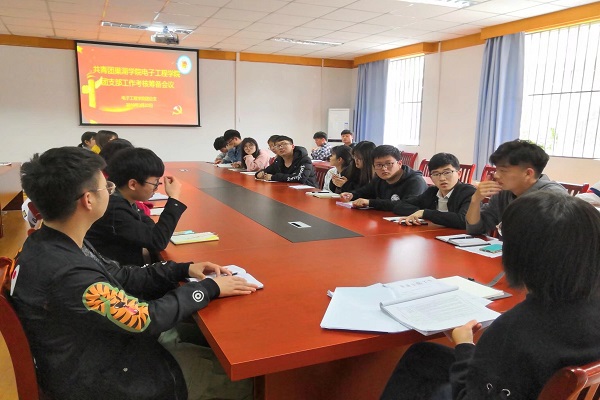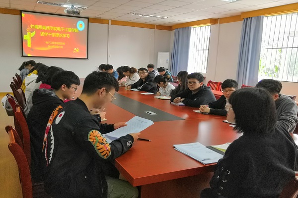 為深入貫徹習近平總書記關于青年工作的重要思想,加強新時代團的基層建設、著力提升團的組織力,3月21日中午,電子工程學院團總支于電教館二樓會議室召開本學期第一次團學干部理論學習會議,此次會議由電子工程學院團總支書記涂靜老師主持,青年志愿者協會、團總支、學生會代表成員以及17、18級各班團干與會。