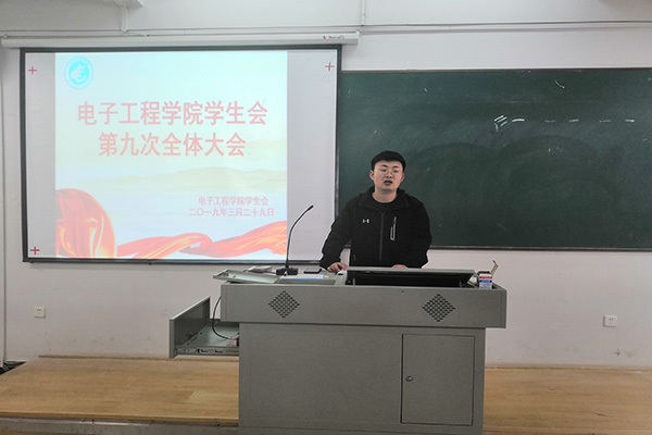 3月29日中午十二點半,電子工程學院學生會于慎思樓中102召開第九次全體大會,本次會議由電子工程學院學生會主席顧宇翔主持,主席團成員及各部門部長、部員參加。
