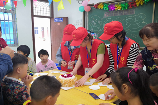 生日會(huì)上,志愿者、老師和孩子們?cè)诓紳M裝飾的教室里載歌載舞。美妙的歌聲和優(yōu)美的舞姿是志愿者對(duì)這些孩子們最美的祝福。志愿者們還用“你畫(huà)我猜”、“搶凳子”等小游戲和孩子們一起互動(dòng)。在游戲中,孩子們臉上洋溢著陽(yáng)光般的幸福。