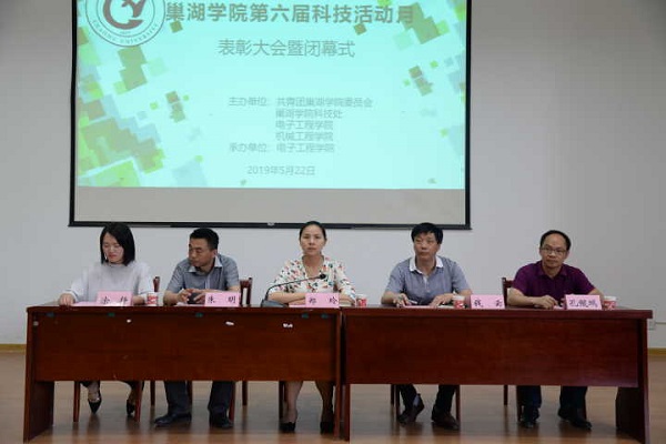 5月22日下午,巢湖學院第六屆科技活動月閉幕式暨頒獎典禮于求實樓報告廳順利舉行。校團委書記鄭玲、電子工程學院院長錢云、科技處副處長朱明、電子工程學院黨委副書記孔鯤鵬以及電子工程學院團總支書記涂靜出席會議,學生代表及比賽獲獎選手共300余人參加閉幕式。