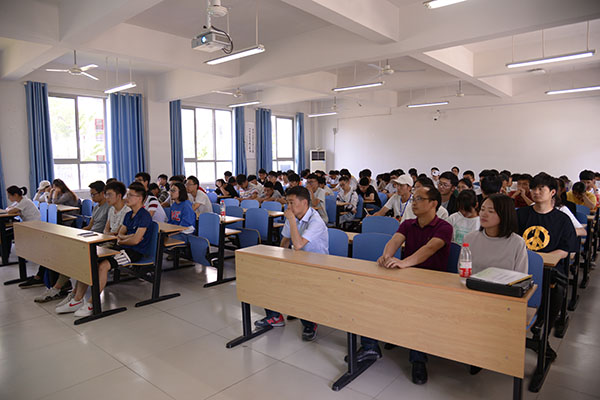報告會伊始,孔鯤鵬向大家簡要介紹了王青校友的基本情況。隨后,王青從四個方面向大家介紹了自己的成長和創業經歷:一是榮譽與擔當:他用一個阜陽市清潔工的例子向大家闡述了基層工作者們對榮譽與擔當的詮釋;二是不忘初心:他希望大家成為一個有理想有意志的現代青年,在生活中不忘初心,牢記使命,砥礪前行;三是艱苦奮斗:他向大家分享了自己在創業過程中一些成功與失敗的例子,希望大家在以后創業的過程中,事先做好相關知識的準備,減輕創業過程中的風險;四是牢記使命:他希望大家要有責任有擔當,樂于付出,做一個有使命的新時代青年人。接著,他針對大學生就業和創新創業問題做了指導性意見,還告訴同學們要享受大學生活,不負青春、多讀書、多參與活動,在實踐中歷練。
