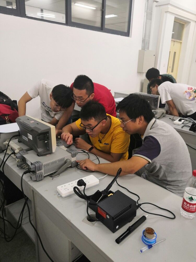 本次比賽自今年3月份啟動(dòng)以來(lái),學(xué)校領(lǐng)導(dǎo)高度重視,教務(wù)處領(lǐng)導(dǎo)給予了大力支持,電子工程學(xué)院密切關(guān)注競(jìng)賽,優(yōu)先保障電子創(chuàng)新設(shè)計(jì)協(xié)會(huì)的備賽活動(dòng),協(xié)調(diào)解決競(jìng)賽過(guò)程中出現(xiàn)的問(wèn)題。備賽期間,任玲芝等指導(dǎo)教師設(shè)計(jì)了各類(lèi)專(zhuān)項(xiàng)訓(xùn)練。作品創(chuàng)作期間,電子創(chuàng)新設(shè)計(jì)協(xié)會(huì)的參賽同學(xué)充分利用時(shí)間,不畏困難,不斷突破創(chuàng)新,優(yōu)化改進(jìn)電路設(shè)計(jì)方案和軟硬件調(diào)試,完成電子設(shè)計(jì)作品的制作、調(diào)試及技術(shù)報(bào)告的撰寫(xiě)。競(jìng)賽期間,指導(dǎo)老師和參賽同學(xué)不辭辛苦,來(lái)回奔波,連續(xù)作戰(zhàn)。
