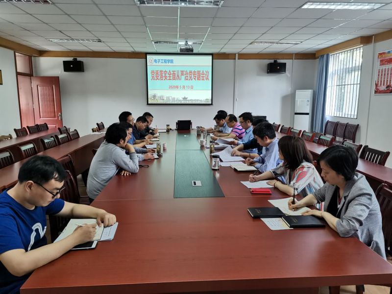 5月13日下午,電子工程學院在會議室召開黨委中心組理論學習擴大會暨黨委落實全面從嚴治黨專題會議,學院黨政班子成員、黨支部書記、教科研秘書、團總支書記、教研室主任參會。會議由院黨委書記陳海波主持。