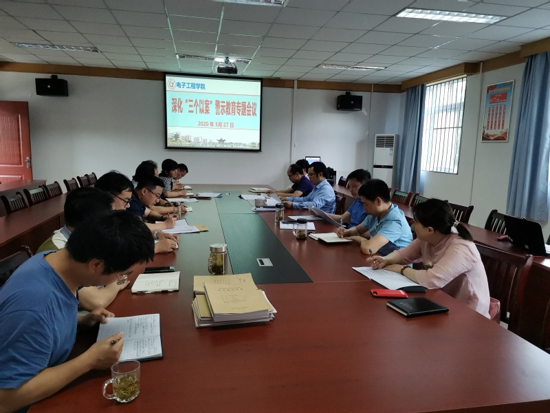 5月27日下午,電子工程學院在會議室召開黨委擴大會議,部署學院深化“三個以案”警示教育專項工作。會議由學院黨委書記陳海波主持,學院黨政班子成員、黨委委員、黨支部書記參會。