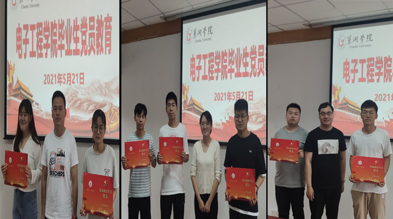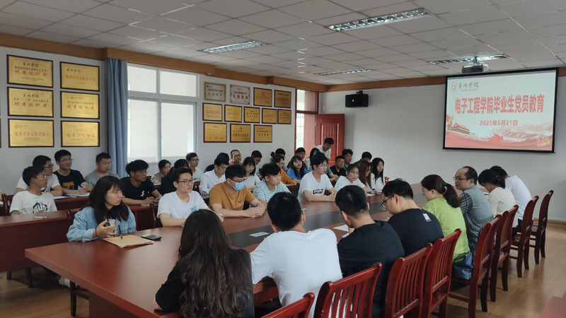 為做好2021屆畢業生黨員教育管理工作,加強黨史學習教育,提升畢業生黨員的黨性修養和理論水平。5月21日下午,電子工程學院于篤行樓二樓會議室召開了2021屆畢業生黨員教育大會。會議由學院黨委副書記孔鯤鵬主持,學生黨支部書記涂靜、王正創、劉振撼,組織員王靜與會,電子工程學院全體畢業生黨員參加。