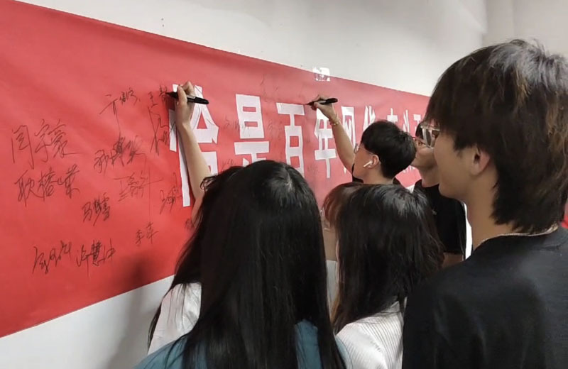 分享會上,與會人員參與文化墻簽名活動,營造積極進取、自強不息的氛圍。